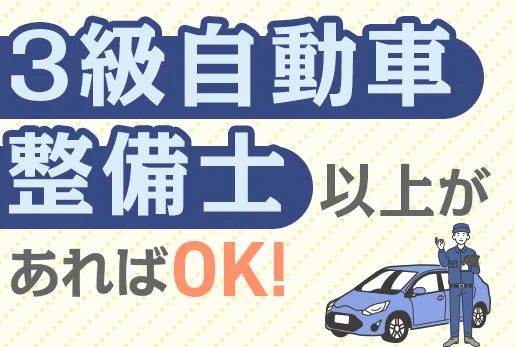 応募条件 | ■3級自動車整備士以上の有資格者 ■高卒以上 ■要普通自動車免許(AT限定可) ★実務経験の少ない方、ブランクのある方も応募OKです! |